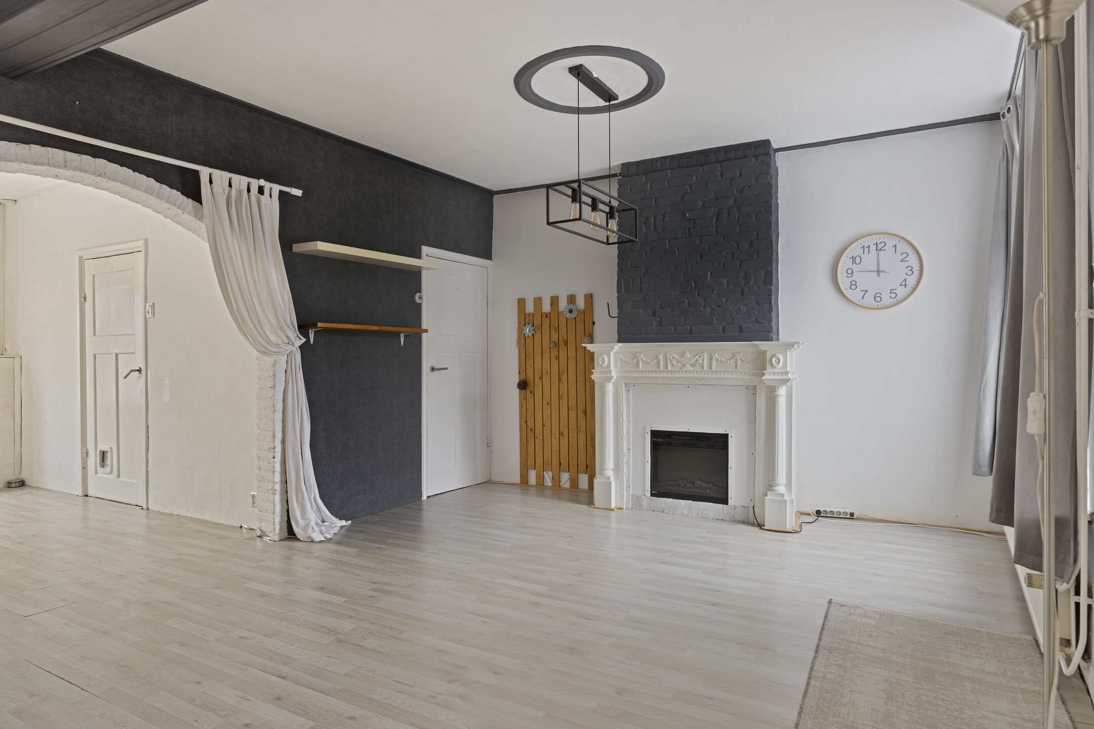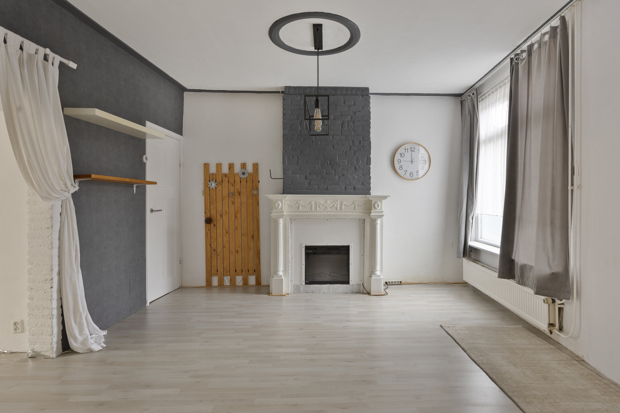 In de riante woonkamer bevinden zich de meterkast (4 groepen met 1 aardlekschakelaar) en een verdiepte kelderkast. De woonkamer is voorzien van een sfeervolle kachel en is afgewerkt met een laminaatvloer, deels behangen en deels stucwerk wanden en stucwerk plafond.