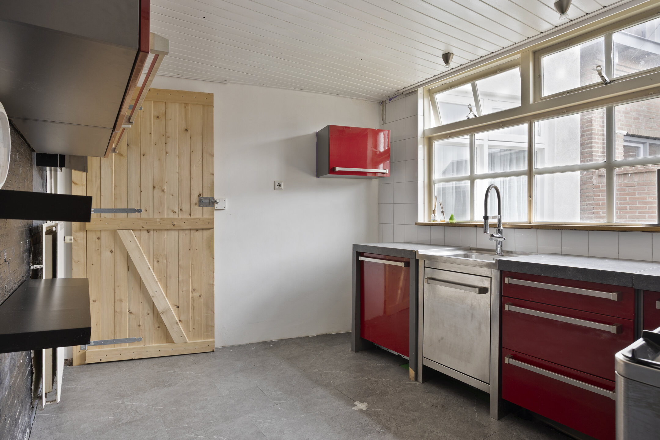 Vanuit de keuken is een achterportaal bereikbaar waarin de douche- en toiletruimte zijn gelegen.