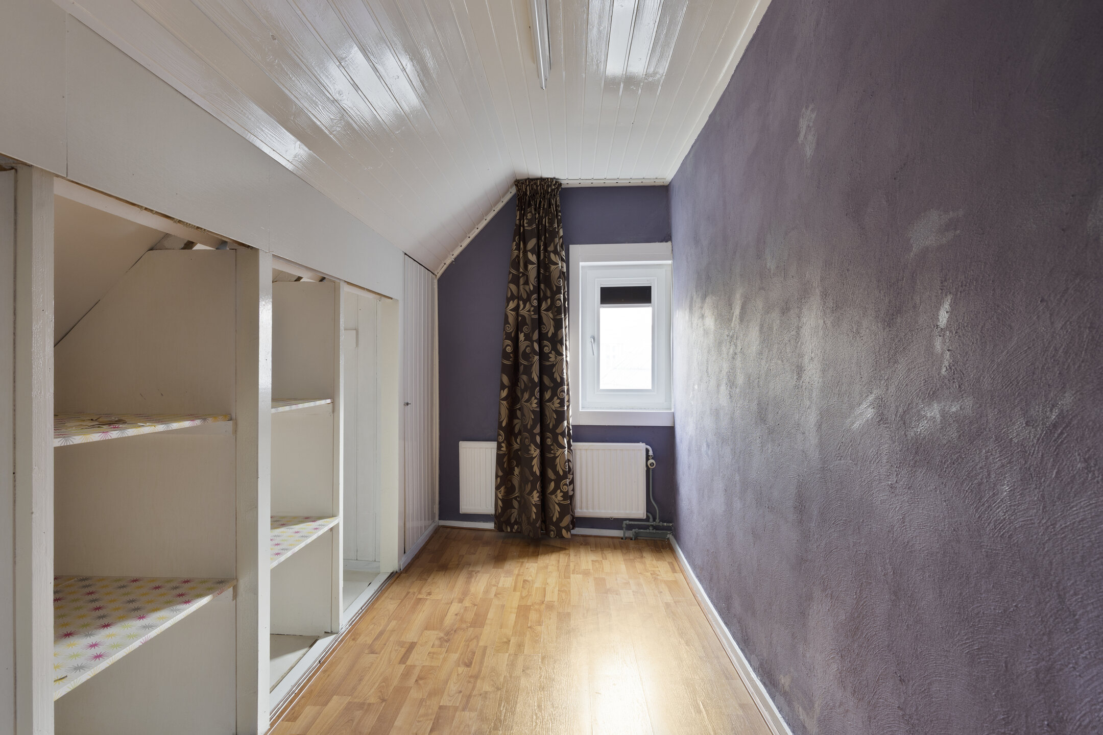 Alle slaapkamers zijn afgewerkt met een laminaatvloer, stucwerk wanden en houten schroten plafond en verder voorzien van kunststof kozijnen met HR++glas, hor en een verduistering-plissé gordijn.