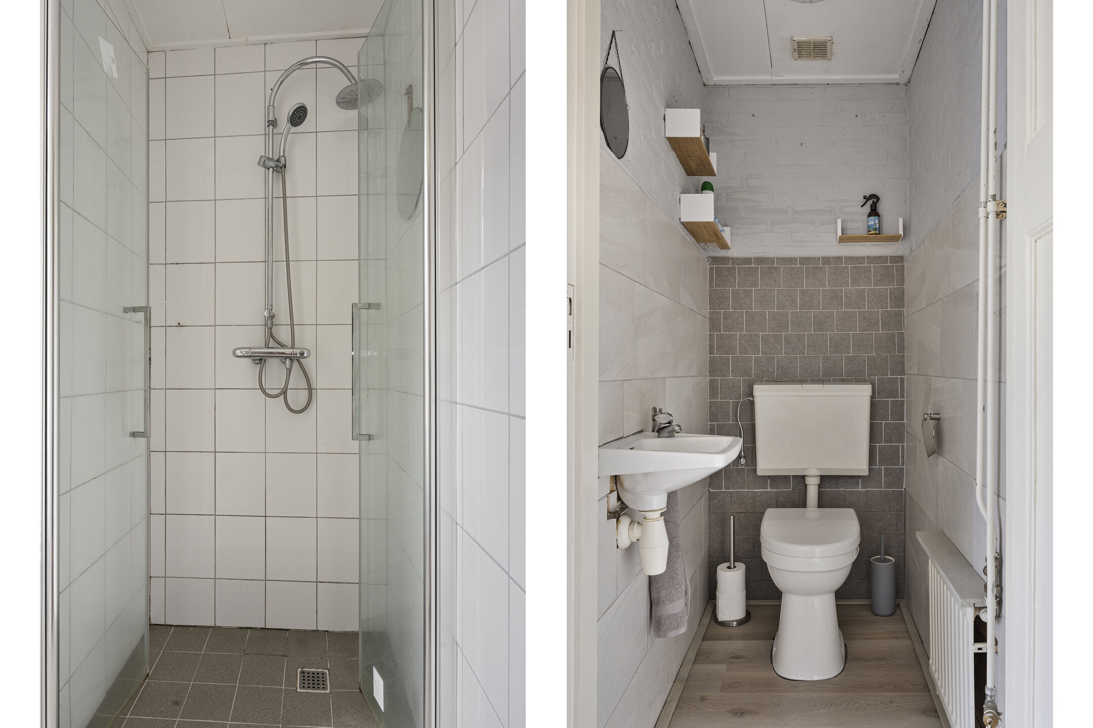 De doucheruimte is volledig betegeld en uitgerust met een douchecabine met thermostaatkraan. Tevens zijn hier de aansluitingen voor de wasapparatuur aanwezig.