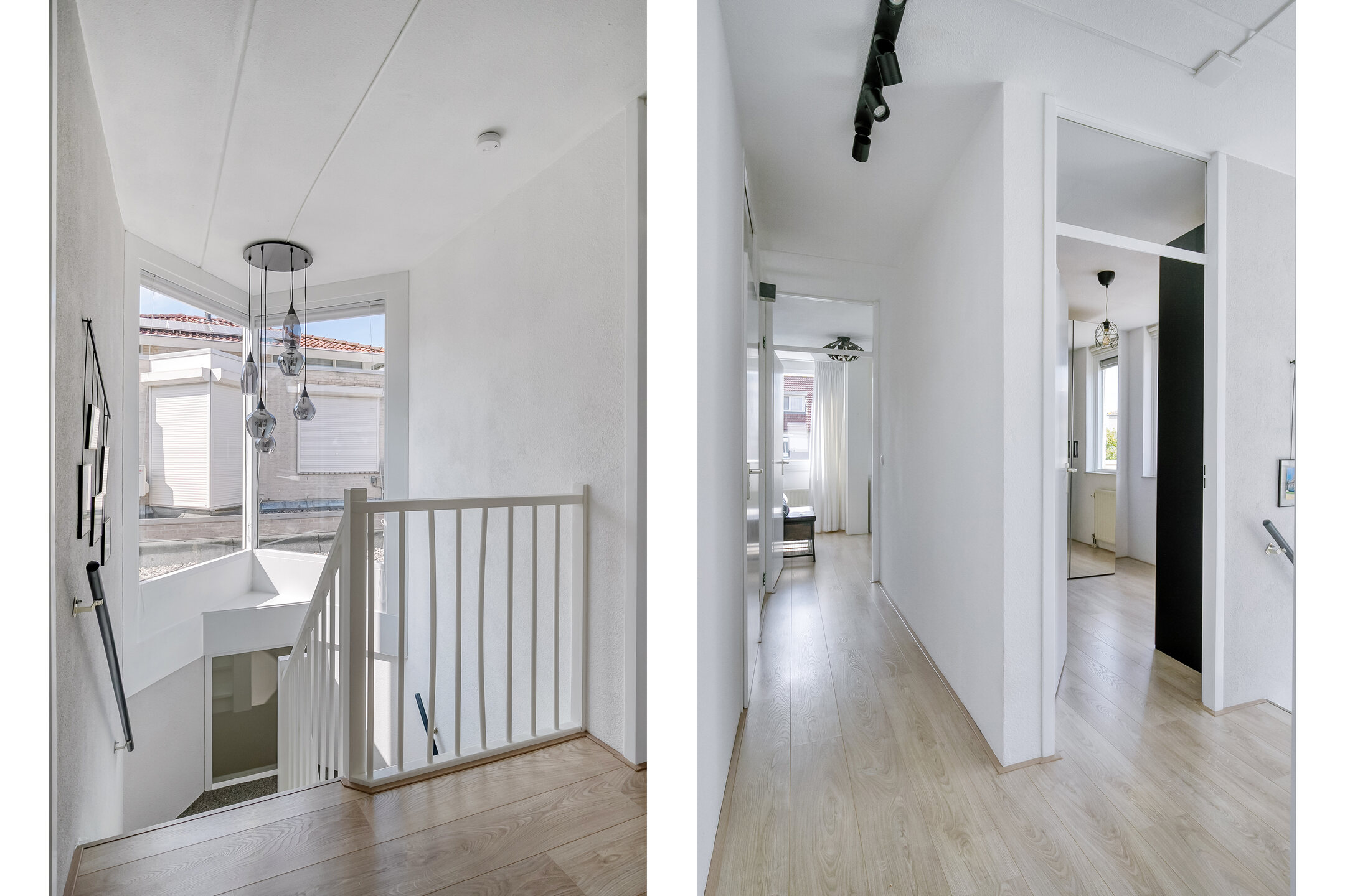 De overloop is afgewerkt met een laminaatvloer die doorloopt over de gehele verdieping (m.u.v. de badkamer) en biedt toegang tot een tussenkamer, 3 slaapkamers en de badkamer.