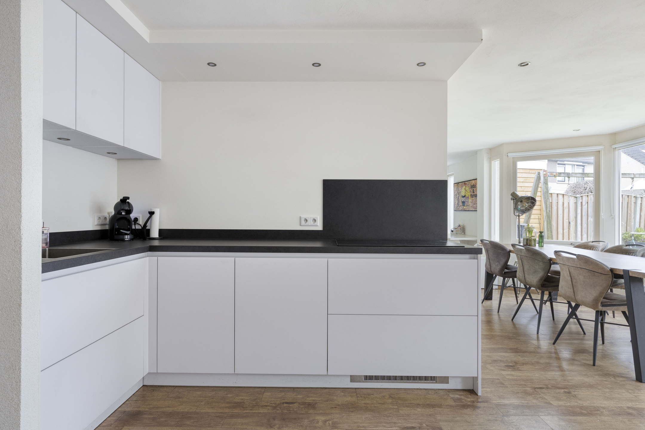 Het moderne meubel is voorzien van een Dekton werkblad met spoelbak en de kastjes zijn voorzien van een nano-coating. De keuken is uitgerust met de volgende inbouwapparatuur: ATAG inductie kookplaat met interne afzuiging, ATAG koelkast, ATAG vaatwasser, ATAG combi-oven en een Quooker.