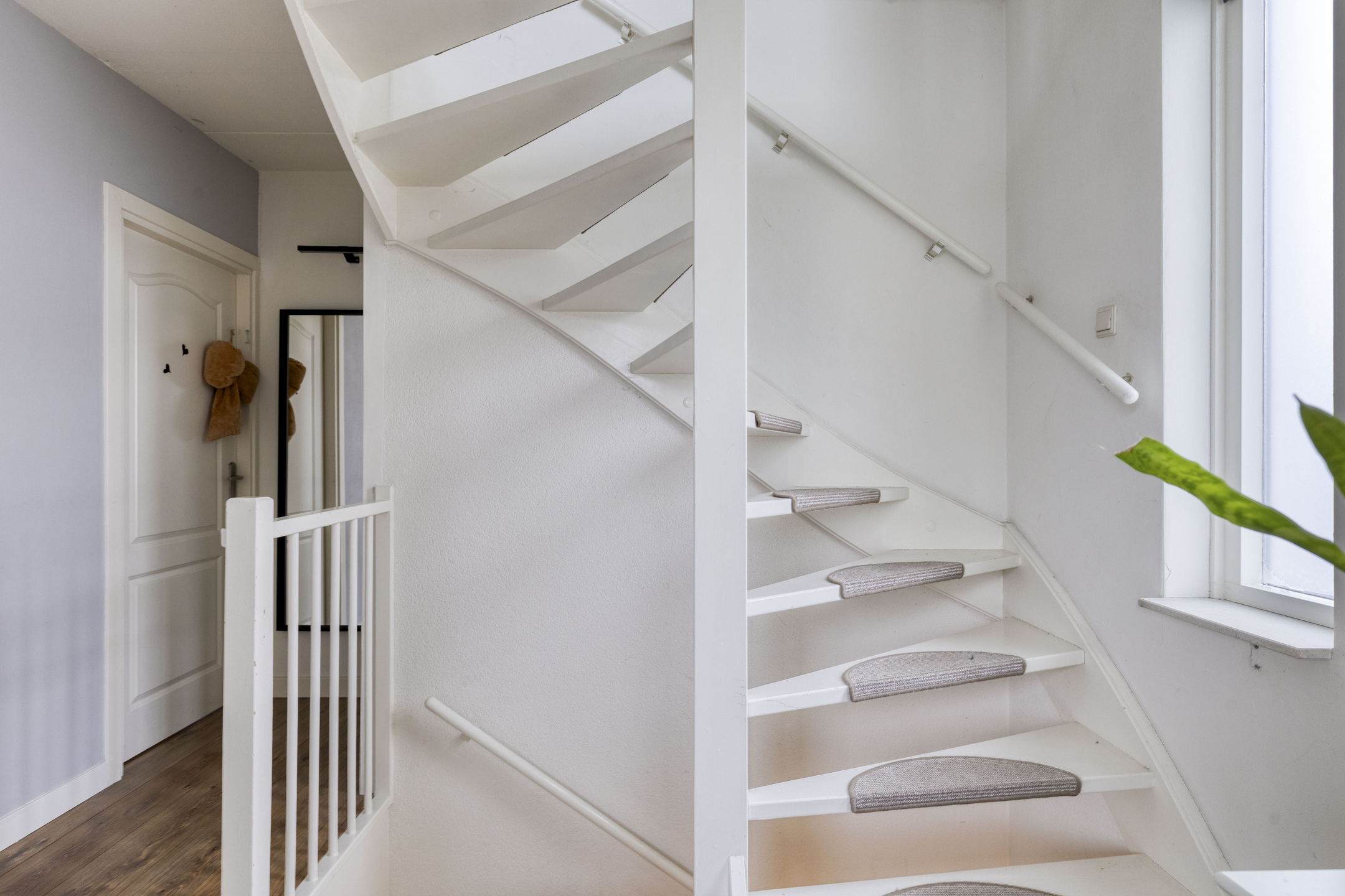 U komt via de carport binnen in de hal. In de hal treft u de meterkast, een kast met de unit stadsverwarming, de toiletruimte en de trapopgang naar de verdieping. De hal is afgewerkt met een tegelvloer voorzien van vloerverwarming die doorloopt over de gehele begane grond. Vanuit de hal is de woonkamer bereikbaar.