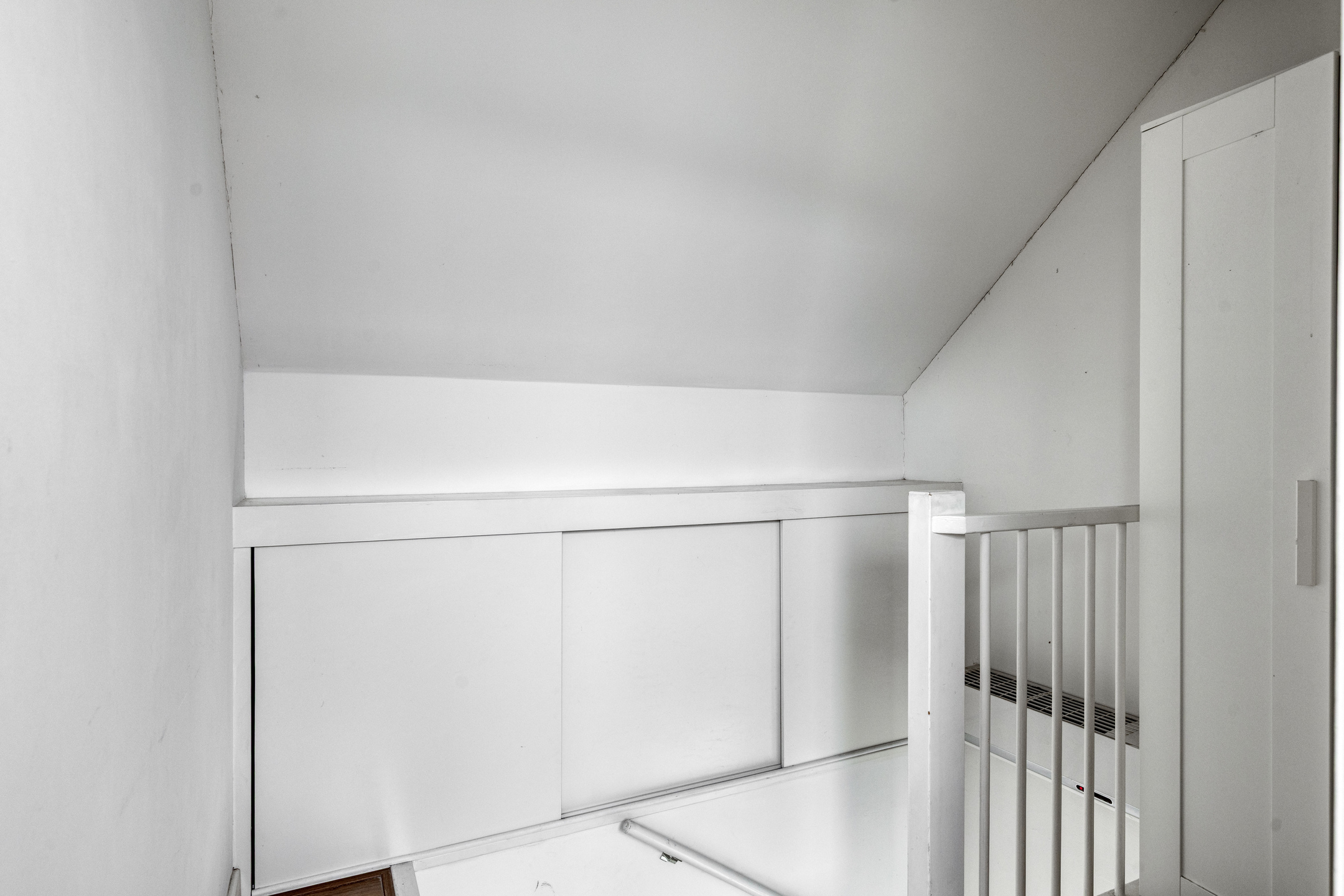 Via een vaste trap bereikt u de voorzolder met praktische bergruimte in de knieschotten. De voorzolder, voorzien van airconditioning, geeft toegang tot de wasruimte en de zolder-/ slaapkamer.