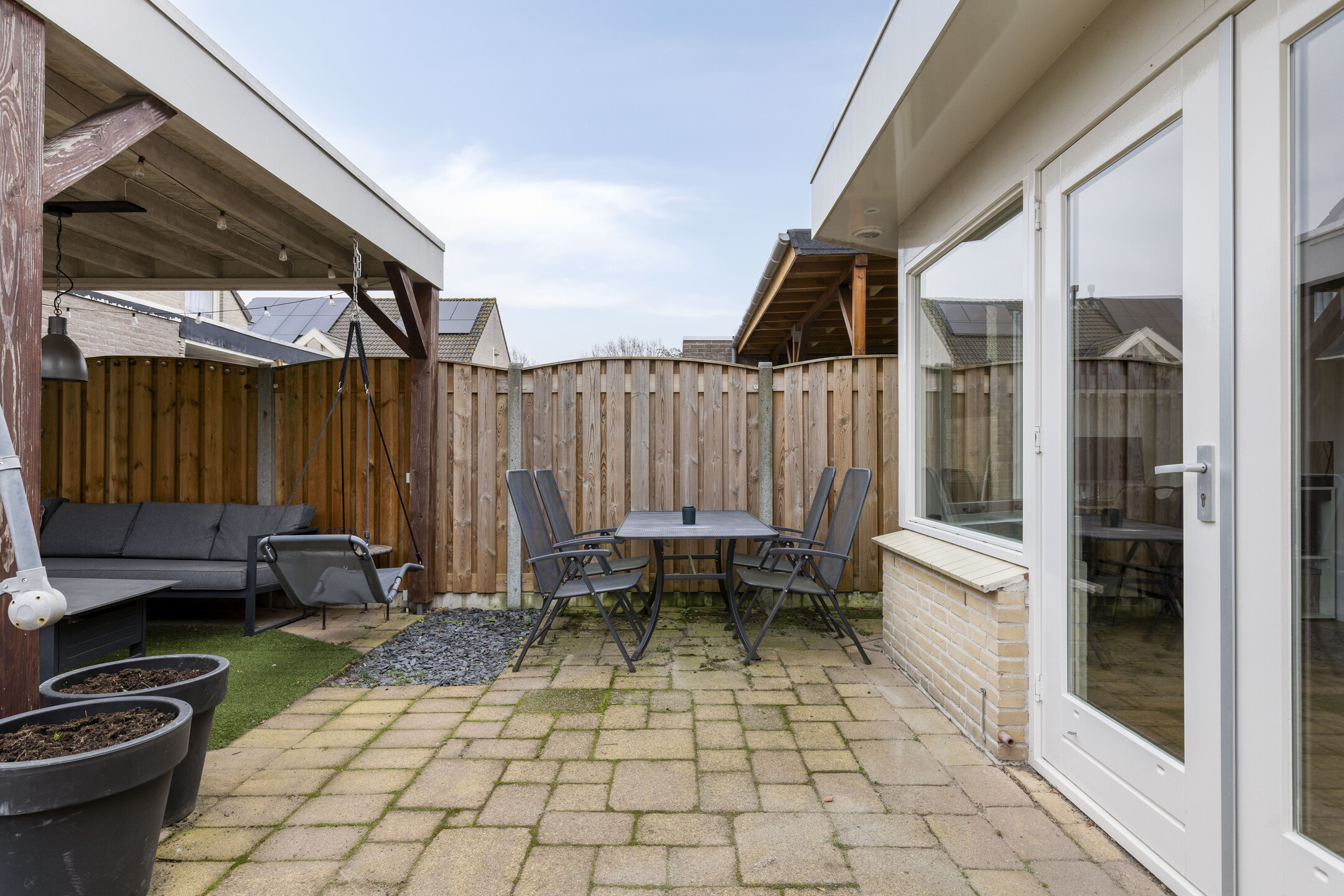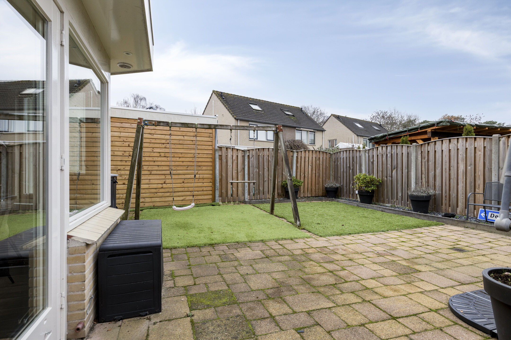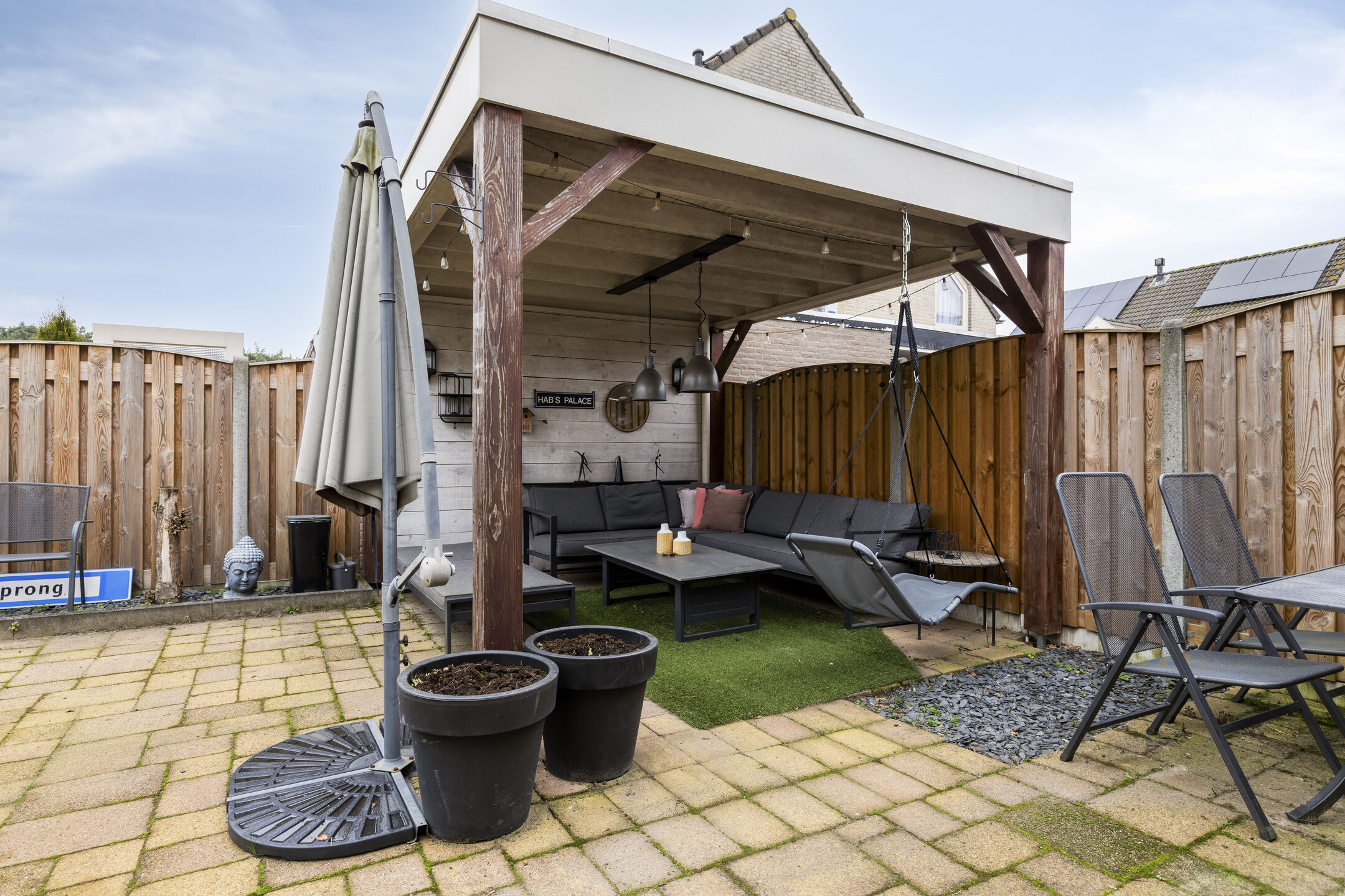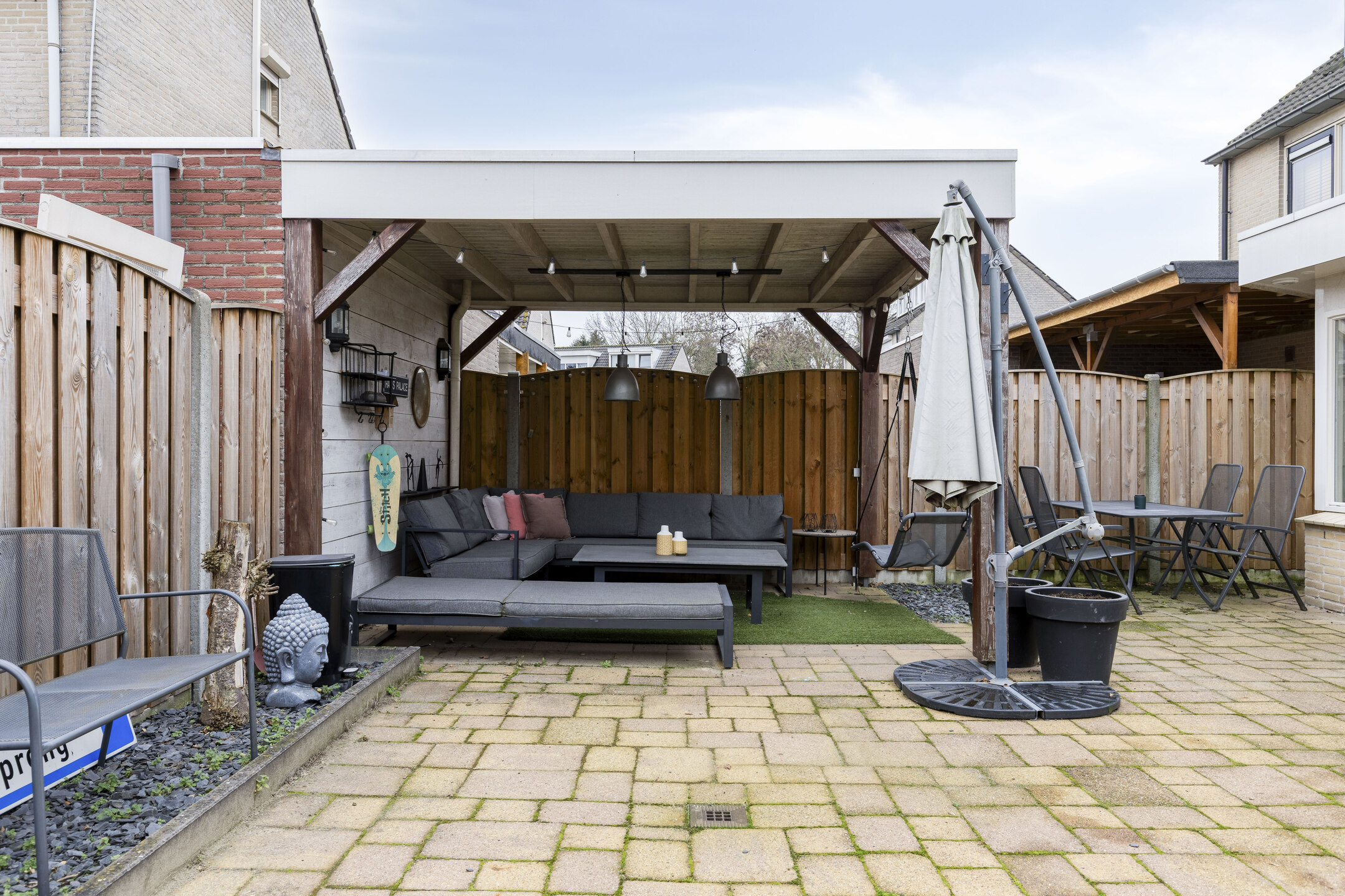 De onderhoudsvriendelijke achtertuin is voorzien van bestrating, kunstgras en een overkapping. Aan de voorzijde van de woning bevindt zich tevens nog een carport.