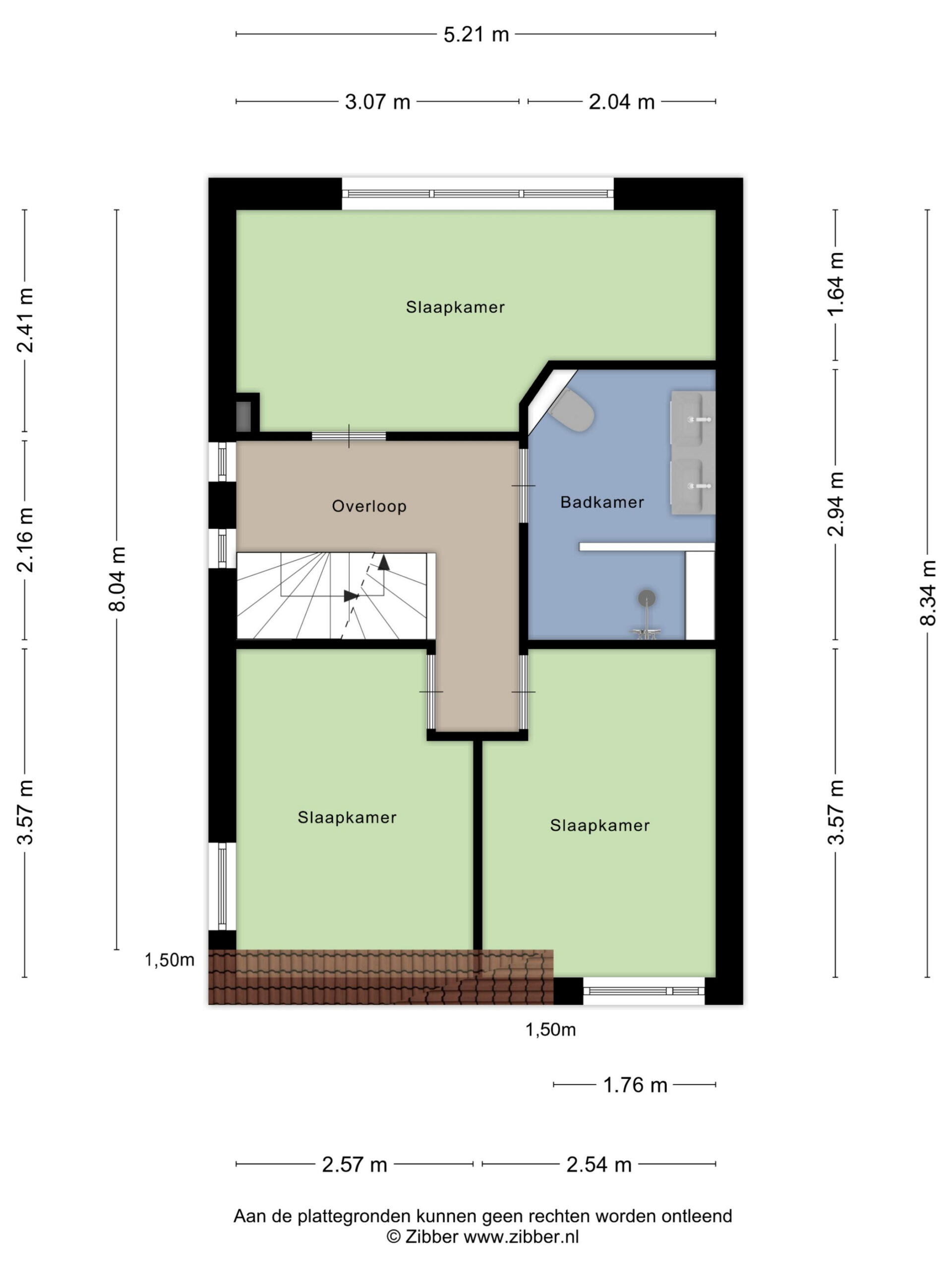 Slaapkamer III (ca. 3.57 x 2.57) is eveneens gelegen aan de voorzijde.