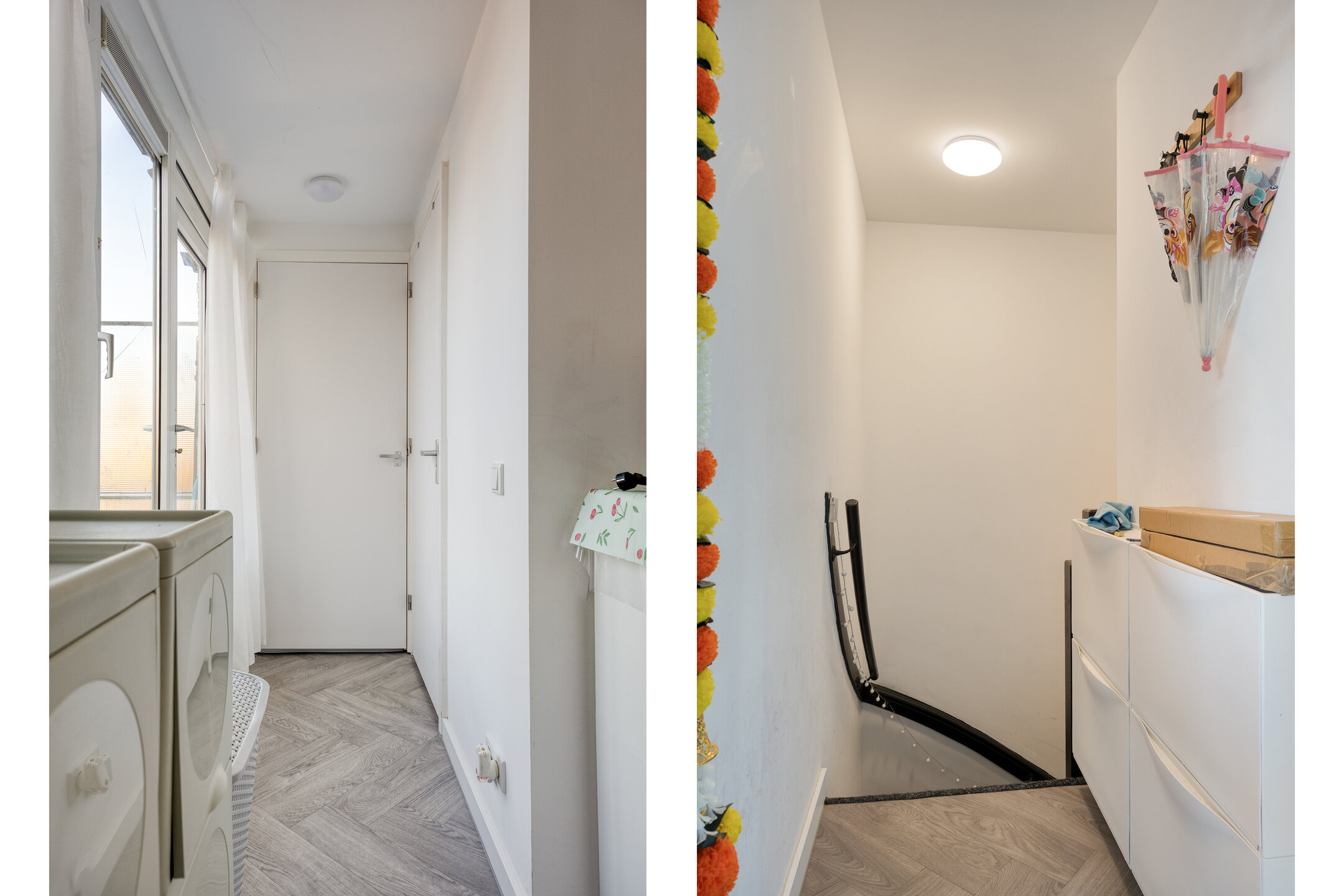 Vanuit de keuken is een portaal bereikbaar. In het portaal bevindt zich de was-/ c.v.-ruimte en de toegang tot de badkamer.