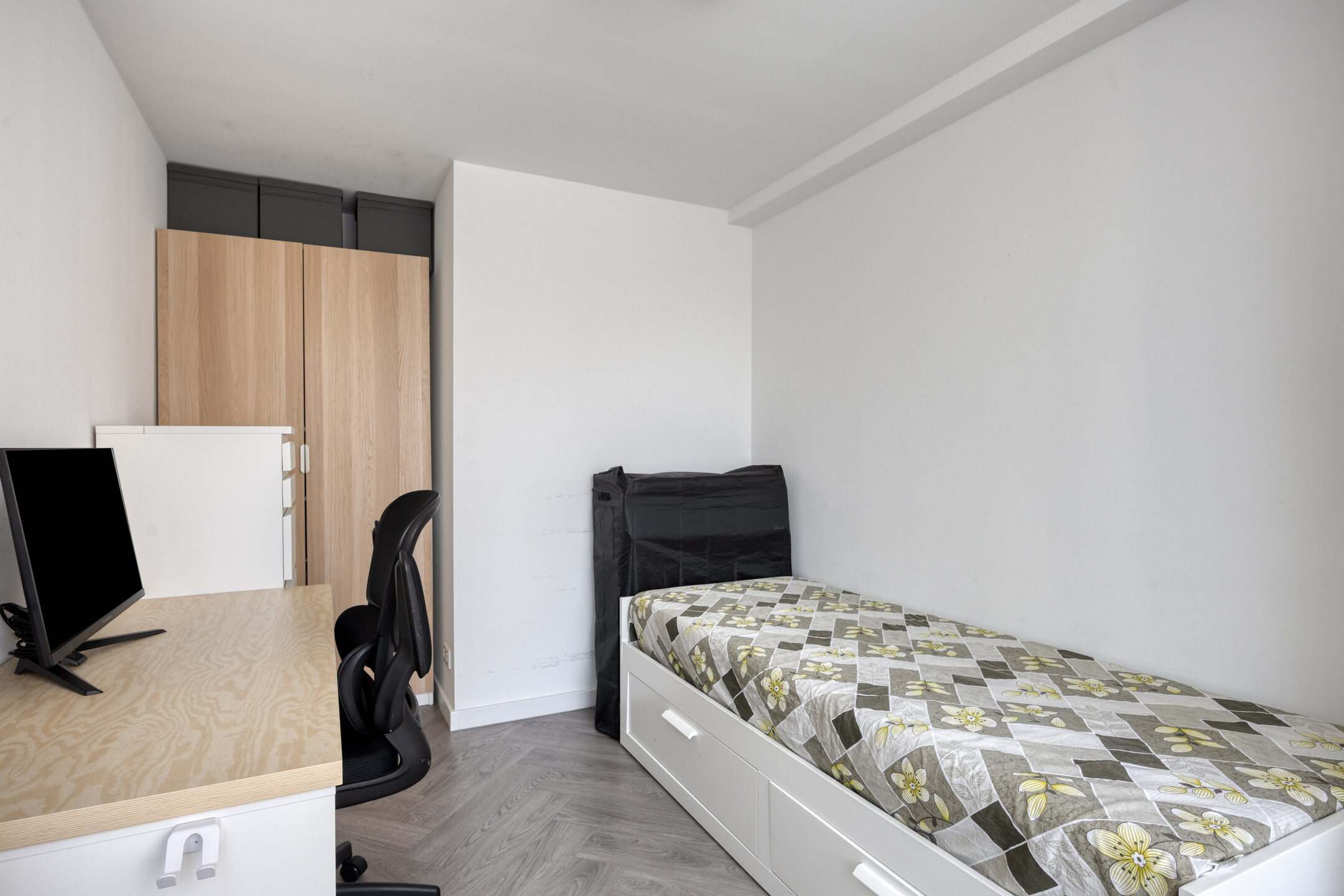 De slaapkamer (ca. 4.43-3.49x2.31) is gelegen aan de voorzijde en afgewerkt met stucwerk wanden en stucwerk plafond.