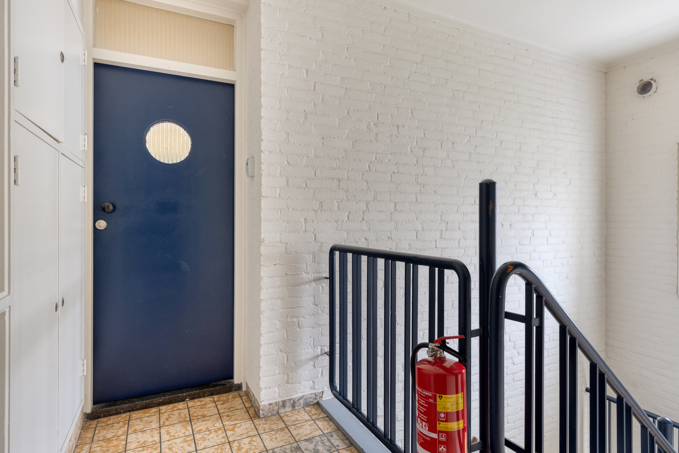 Centrale entree met intercom en trappenhuis ? portiek met meterkast ? hal met toilet ? woonkamer met muurkast ? gesloten keuken ? slaapkamer met muurkast en toegang tot balkon ? badkamer.