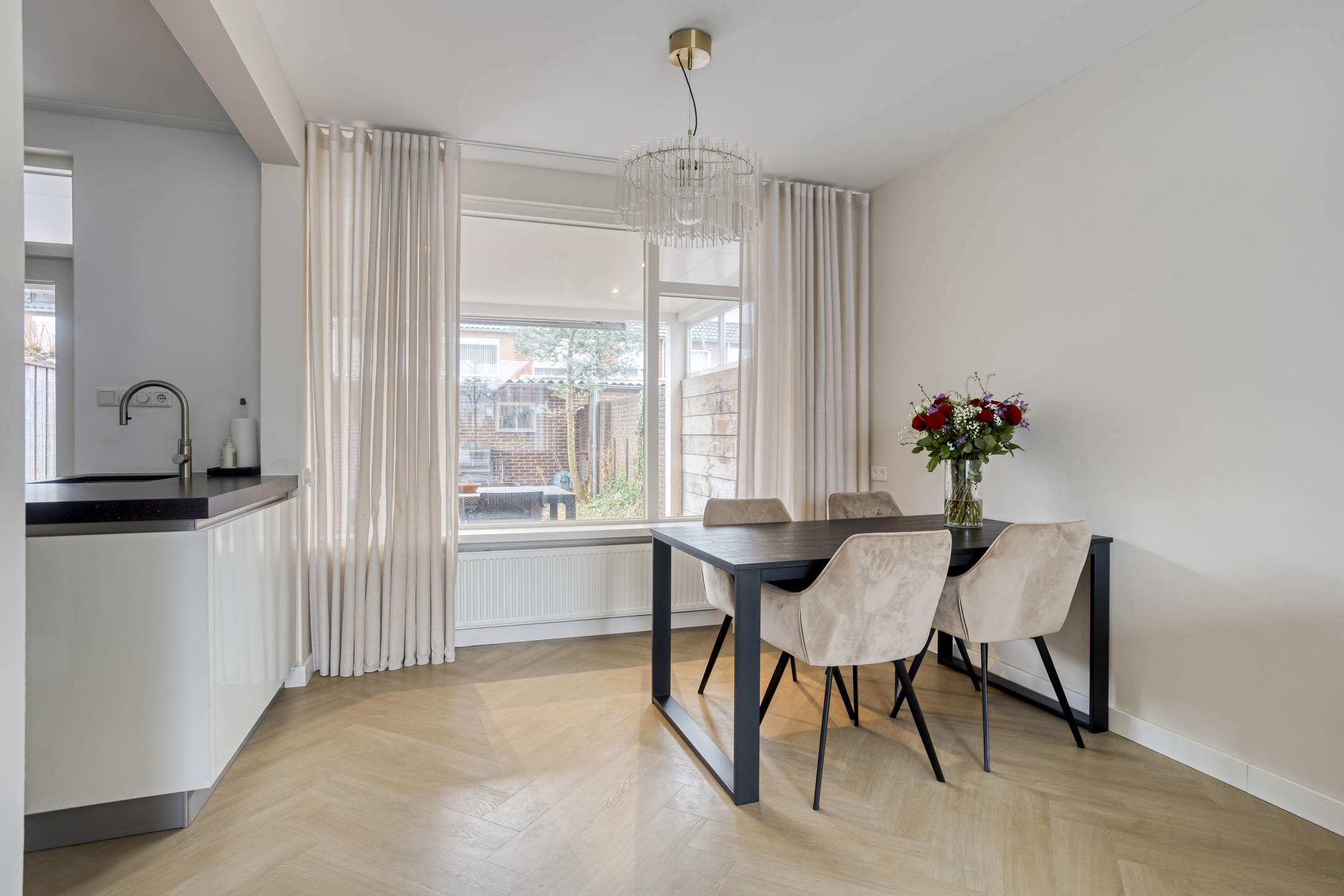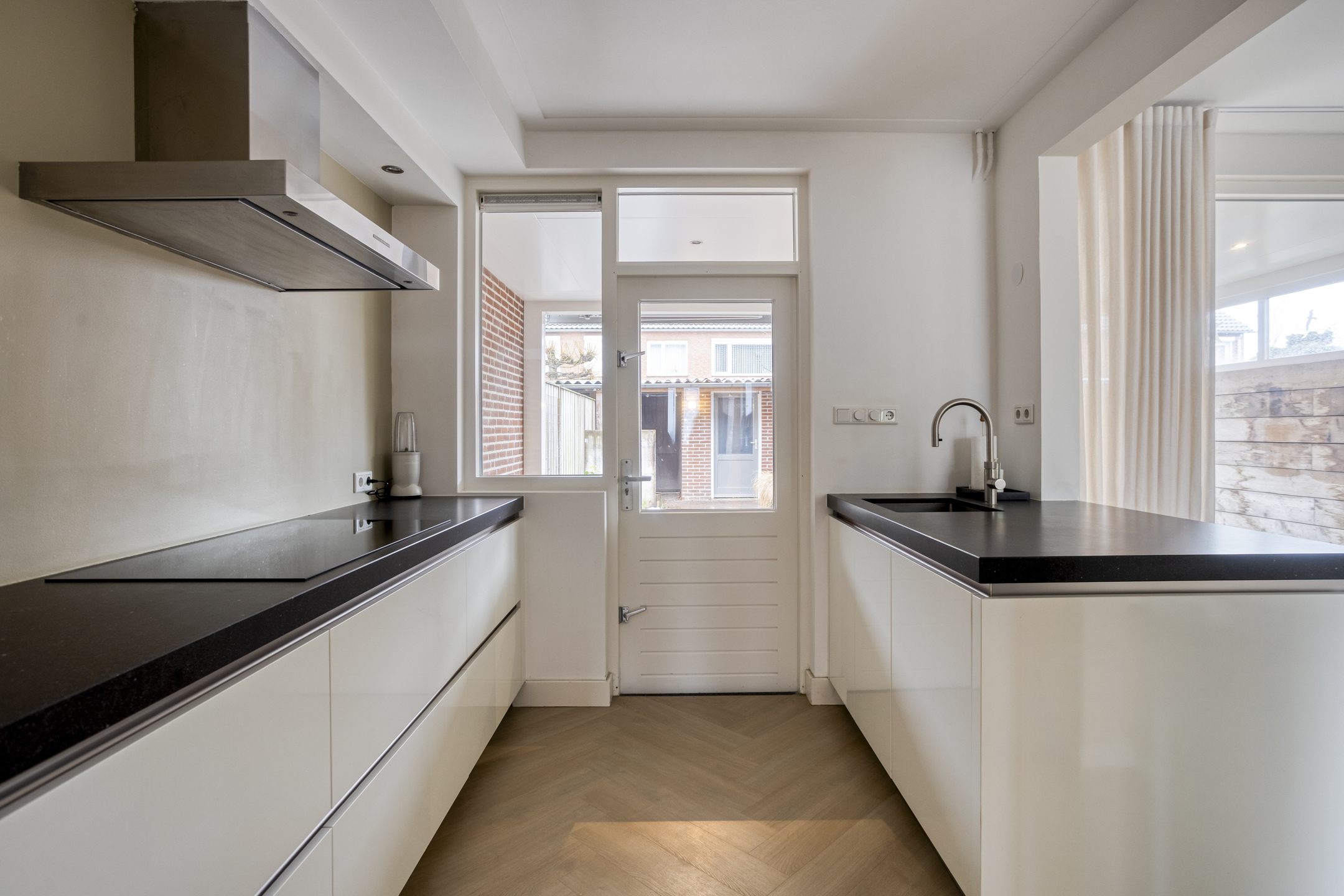 Vanuit de keuken is de achtertuin bereikbaar.