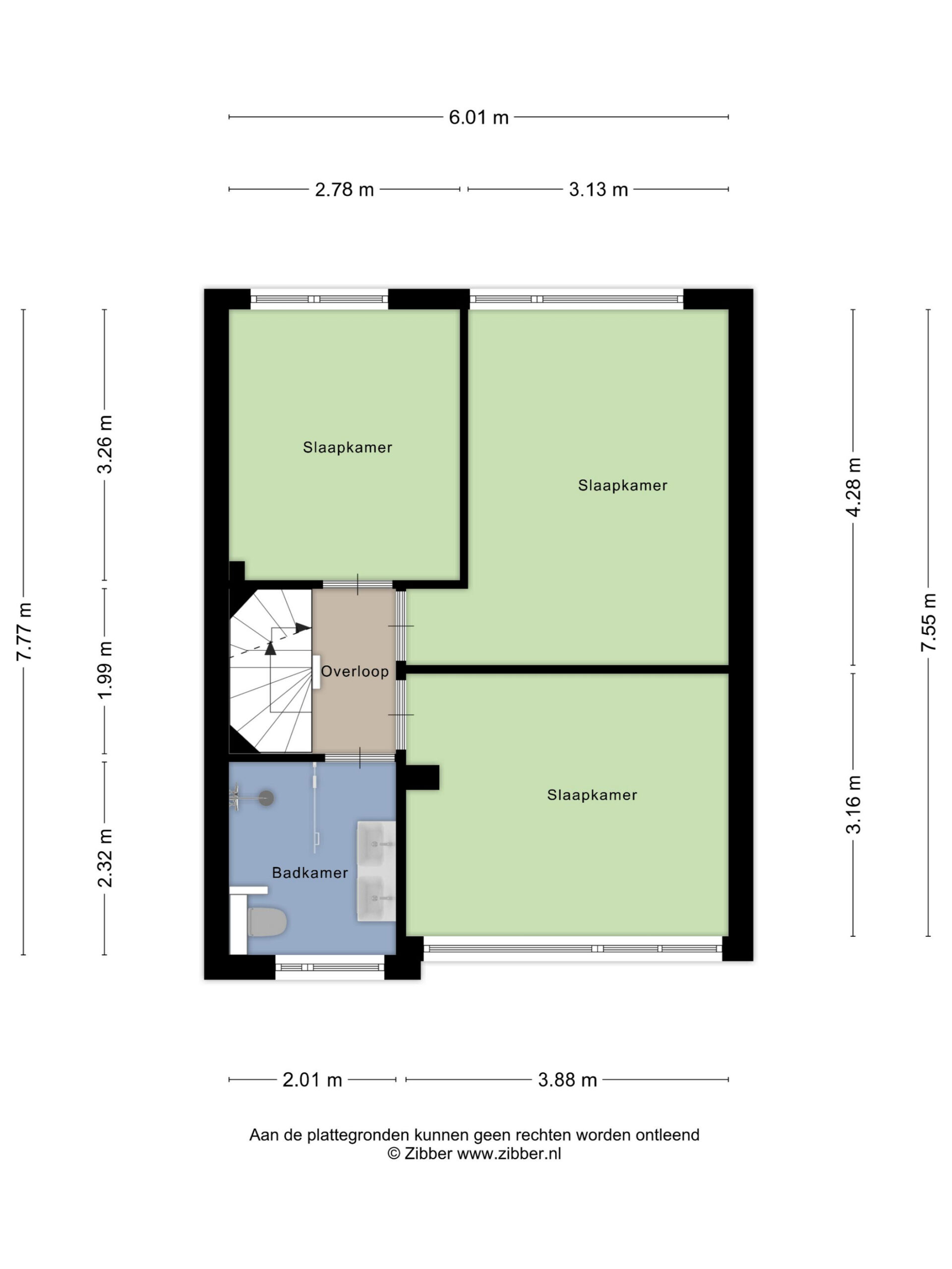 Slaapkamer III (ca. 3.88 x 3.16) is gelegen aan de voorzijde.