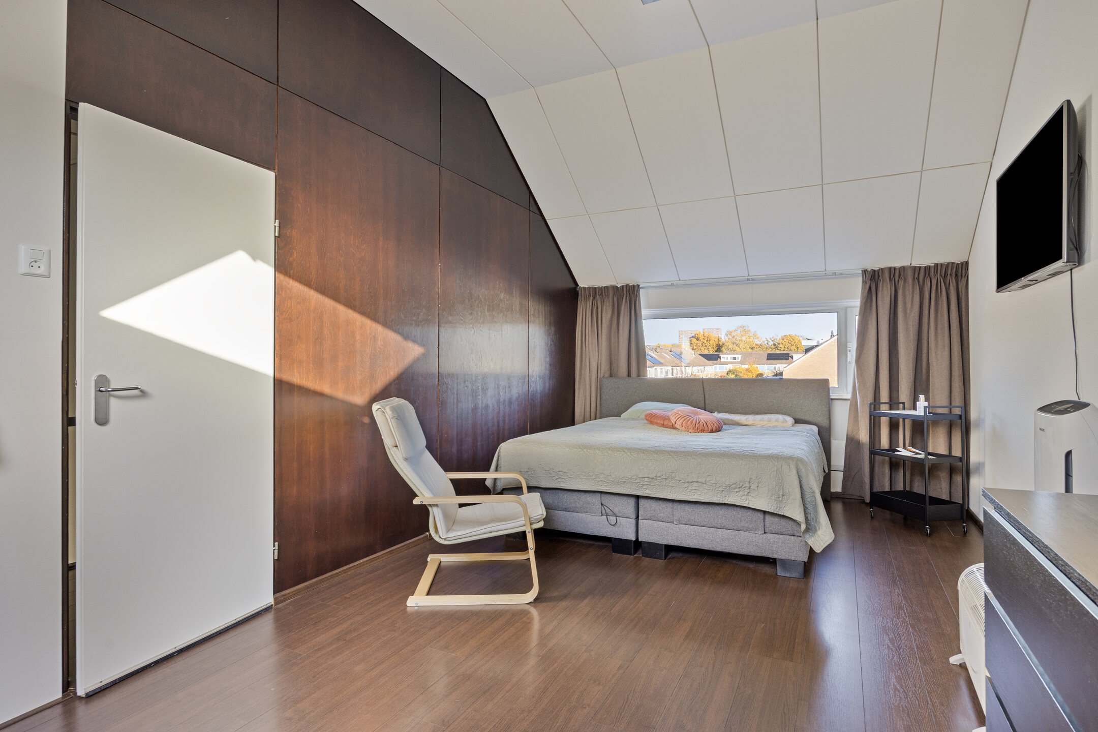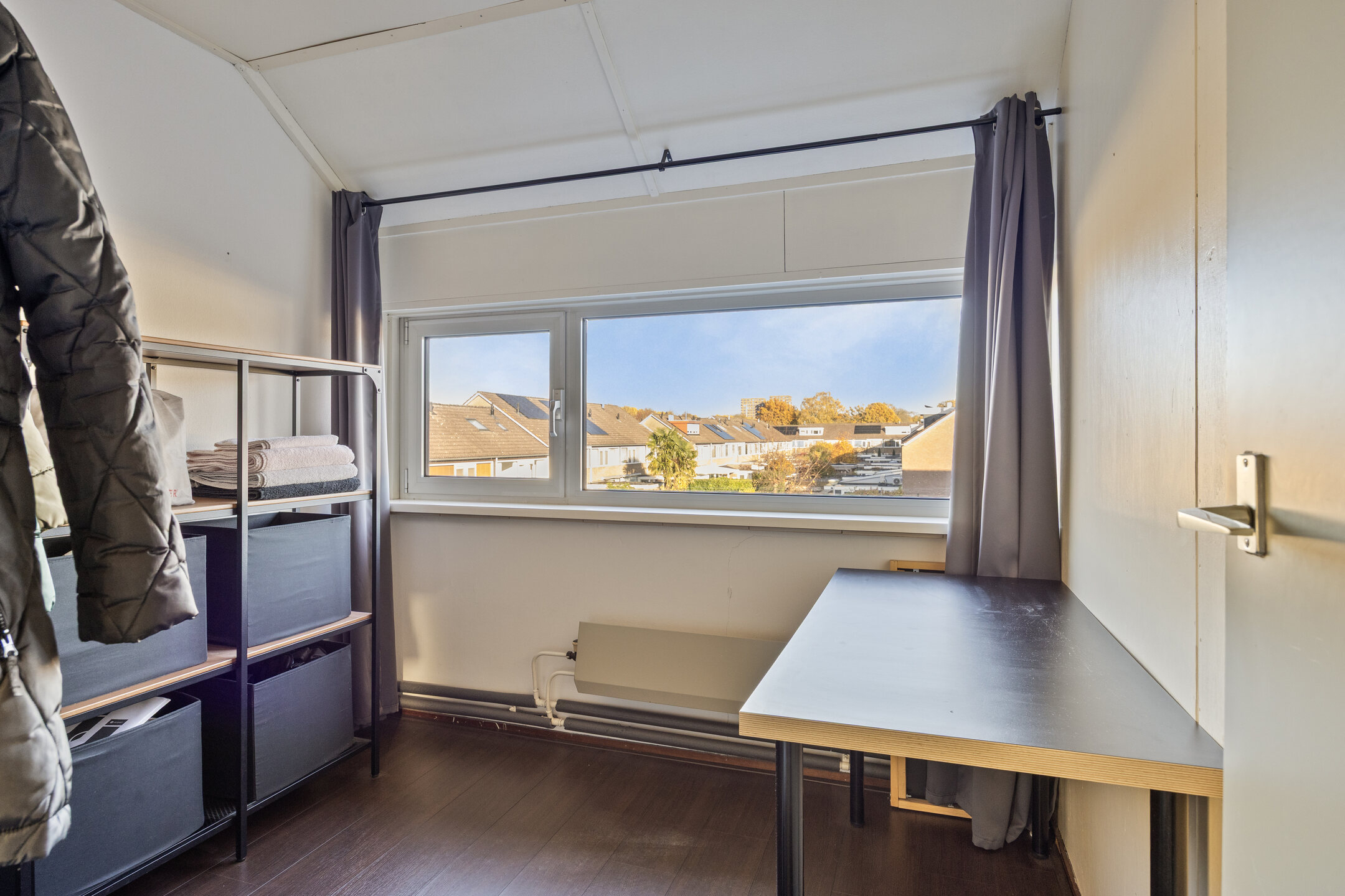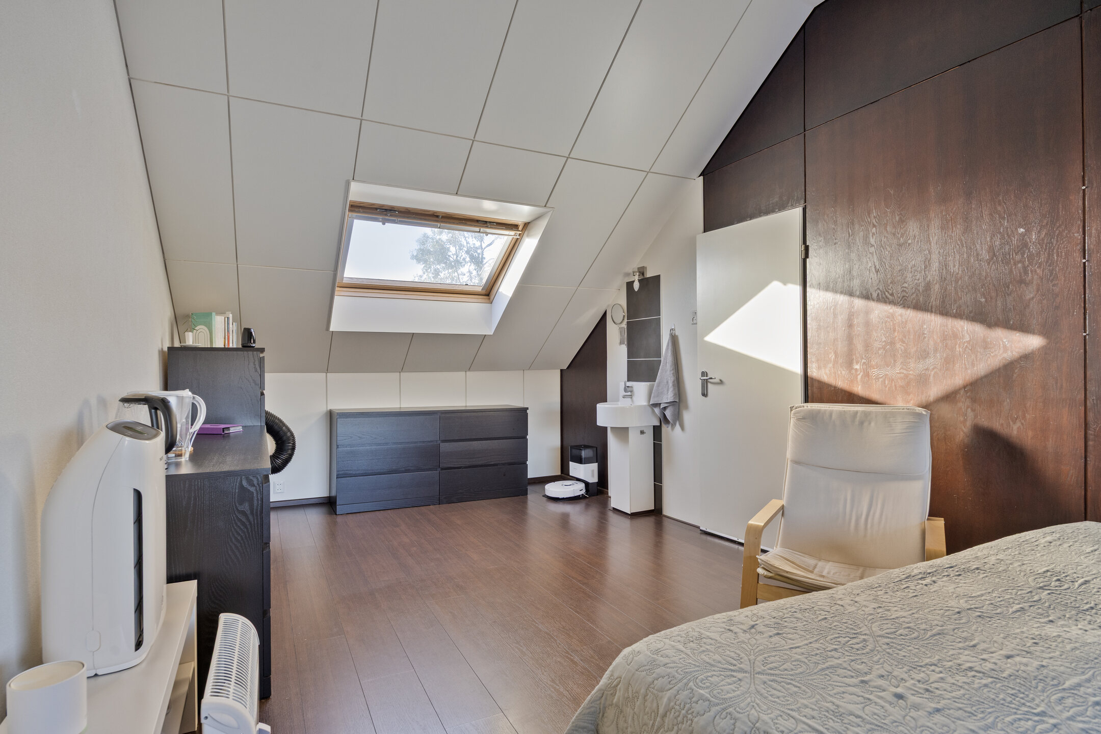 Slaapkamer IV (ca. 6.15* x 3.23) is voorzien van een gevelraam en Velux dakvenster met verduistering;