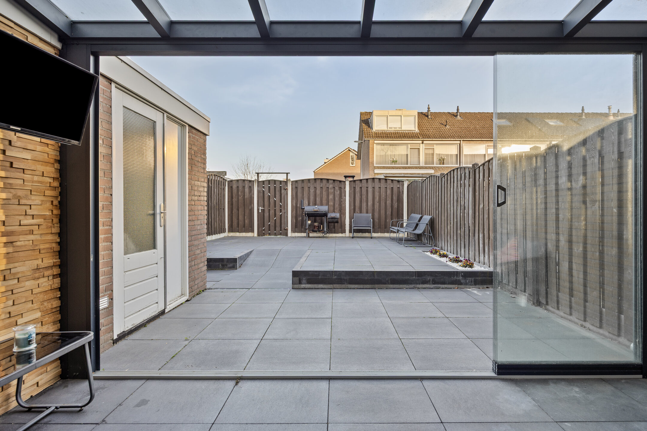 * Aluminium overkapping met glazen schuifpui (2022)
